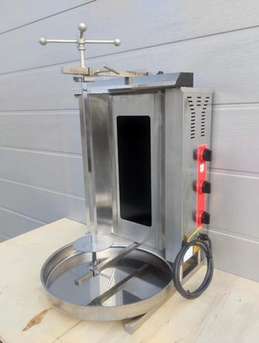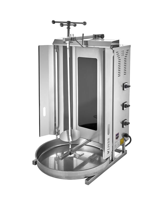 Аппарат для шаурмы электрический Remta SD12 служит для обжарки большого количества различных видов мяса и птицы для приготовления начинки для шаурмы, донера и других блюд в точках фас-фуда, ресторанах, кафе. В аппарат шаурмы Remta SD12 можно загрузить около 40 кг. мяса. аппарат с тремя зонами нагрева, каждая из которых включается отдельно. Переключателем можно выставить 100% мощности или 50%.. ТЭНы закрыты термостойким стеклом. Шампур гриля для шаурмы SD12 можно передвигать ближе или дальше от нагревателей. На большом поддоне для сбора мяса удобно резать начинку для шаурмы.
