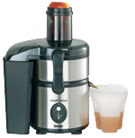 Принцип работы. В корпусе (металлическом или пластиковом) находится двигатель. К его верхней вращающейся части прикреплена центрифуга-сито, у которой вместо дна – дисковая терка. С помощью мотора центрифуга раскручивается, с силой прижимает жмых к сетчатым стенкам и отделяет от него сок (процесс сепарации). В зависимости от формы центрифуги жмых либо остаётся в ней, либо автоматически удаляется в специальный контейнер.