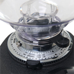 «По щелчку» дозатора аппарата: 1 порции молотого кофе соответствует каждый полный (до упора) щелчок рычага. Для работы этой системы, бункер для молотого кофе необходимо заполнять как минимум на одну треть, а винт дозатора при этом — закрыт. Необходимо учитывать, тот факт, что точной дозировки 7 г добиться практически нереально, т.к. допустимая погрешность профессиональной кофемолки составляет +/- 0,15-0,2 г. По окончанию настройки размера помола нужно наполнить бункер молотым кофе до середины, разровнять его и, сделав щелчок, взвесить порцию. Если размер порции надо увеличить — винт дозирующего устройства поверните немного вверх (таким образом вы расширите расстояние между дозирующими пластинами). Если размер порции надо уменьшить — винт поверните немного вниз.
