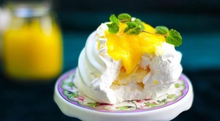 Порожное Павлова — это нежнейшее безе (меренга) куполообразной формы, взбитое с крахмалом, благодаря которому пирожное имеет хрустящую корочку снаружи и остается немного влажным внутри. Сверху десерт украшается сезонными фруктами, цитрусовыми, листочками мяты, шоколадом или орешками.