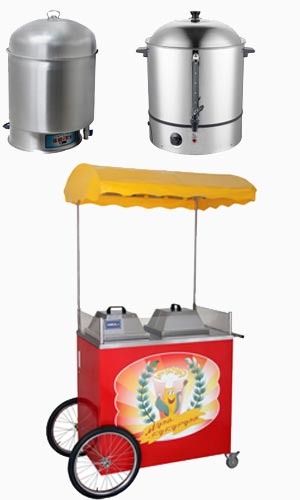 Хорошо зарекомендовали себя тележки-кукурузоварки отечественного производства (КИЙ-В), дополнительным преимуществом которых, является трансформация в мобильную точку по приготовлению попкорна, хот-догов или сладкой ваты.