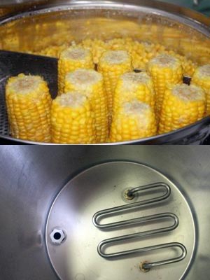 ТЭН в кукурузоварке может быть открытого и закрытого типа. Открытый тип обеспечивает более быстрый нагрев воды, чем закрытый тип у аналогичных устройств и, соответственно, обеспечивает более быстрое приготовление кукурузы. К плюсам открытого типа ТЭНа можно также отнести быструю замену во время поломки, к минусам - быструю изнашиваемость.