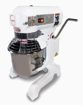 Профессиональный планетарный миксер с объемом дежи 7 л. Дежа: съемная. Подъемная траверса (голова). Скорость вращения: 85 - 530 об/мин. Напряжение: 220 В. Мощность: 0,28 кВт.