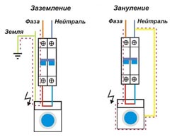 Если говорить максимально по простому, то зануление провоцирует моментальное отключение электроэнергии при опасном контакте человека и провода под напряжением. А заземление мгновенно отводит опасное напряжение в землю.