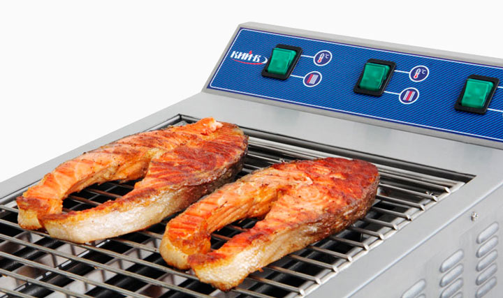 Куплен около 10лет назад. Долго стоял без дела. Открыли маленькое кафе и он нас очень выручил. Вопросов к работе нет никаких вообще. Греется быстро, на колбасках полочки как на фотках с интернета. Единственный минус - очень плохо мыть: (Снимается решетка, защита тенов, вытаскивается поддон но все равно этого мало. Крылья те что под тенами все равно очень быстро загрязняются и помыть их как требуется тяжело. Хотелось бы чтоб тены вместе с коробкой, там где электроника вытаскивались как в фритюте.