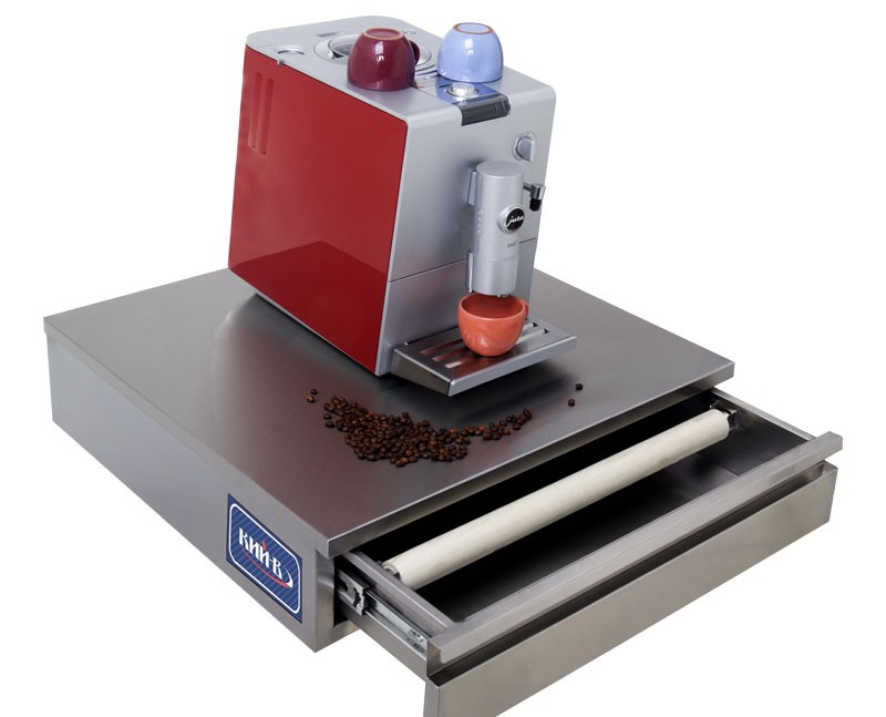 База под кофеварку комплектуется выдвижным ящиком и прорезиненным съемным валом для выбивания кофейной гущи..