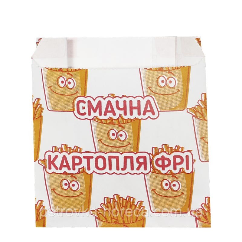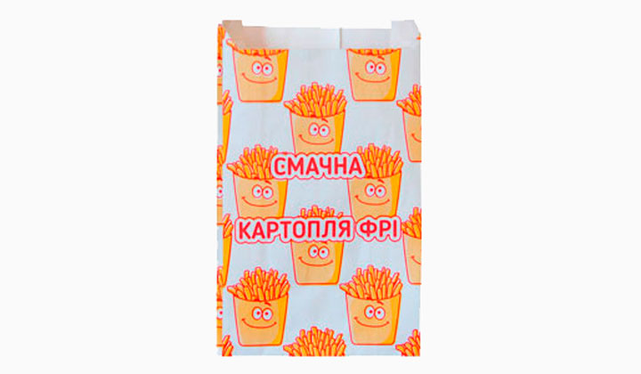 Бумажный пакет из белого пищевого крафта с рисунком для картошки фри