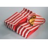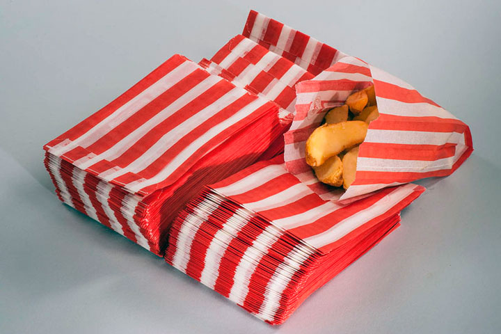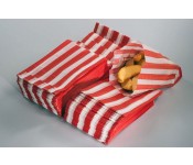 Бумажный пакет для попкорна из белого пищевого крафта с красной полосой.