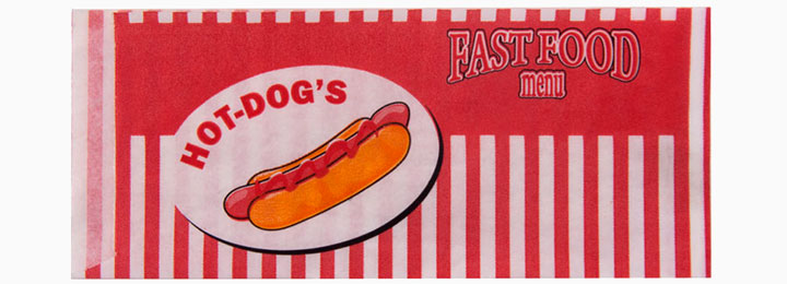 Бумажный уголок для хот дога из белого пищевого крафта, с рисунком.