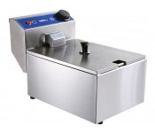 Аппарат ЧБ-8 используется для жарки чебуреков и пончиков, а также продуктов, нарезанных ломтиками (картофель фри. грибы, овощи, кольца кальмара), с полным погружением в масло.