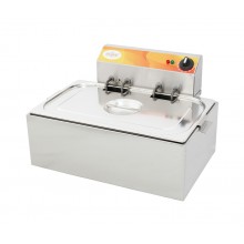 Аппарат HKN-EF16 используется для жарки чебуреков и пончиков, а также продуктов, нарезанных ломтиками (картофель фри. грибы, овощи, кольца кальмара), с полным погружением в масло.