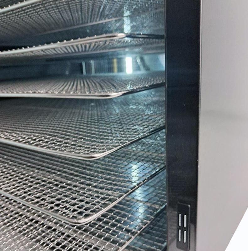 В модели DH-10H-SS нагрев происходит за счет нагревательных элементов, а вентилятор распределяет горячий воздух внутри сушилки для продуктов горизонтально, обеспечивая равномерную сушку продуктов.