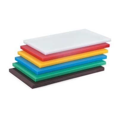 В соответствии с требованиями СЭС для нарезки и разделки продуктов следует использовать разделочные доски разных цветов:
