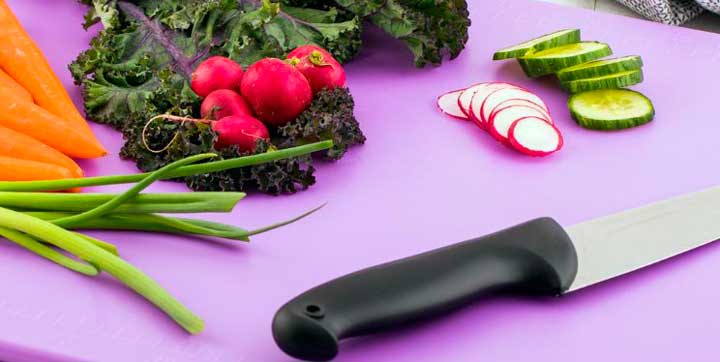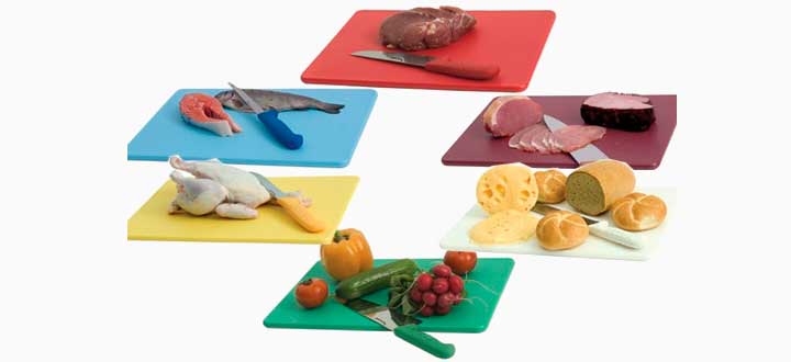 В соответствии с требованиями СЭС для нарезки и разделки продуктов следует использовать разделочные доски разных цветов: