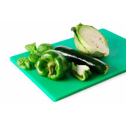 Профессиональная разделочная доска зеленого цвета используется для зелени, овощей на предприятиях общественного питания.