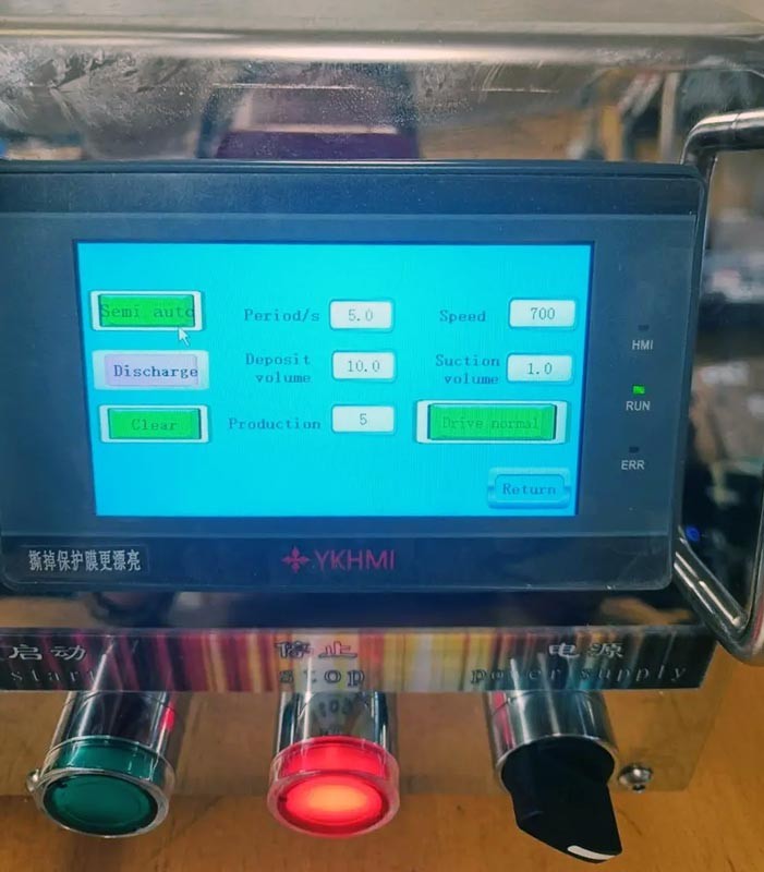 Полуавтоматический режим: оператор после выставления настроек должен находиться около панели управления и запускать каждый цикл дозировки отдельной заготовки.