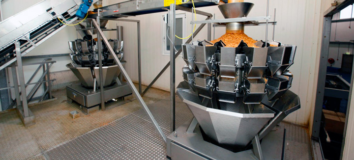 Приводная система оснащена шаговым двигателем. Продукт перемещается с помощью вибропитателя ( вибрационный конус, радиальные лотки, промежуточный ковш ), после попадает в звешивающий ковш, который определяет вес продукта тензодатчиком.