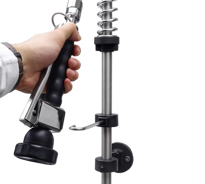 Спиральная пружина из нержавеющей стали защищает от поломки и перегиба шланг.