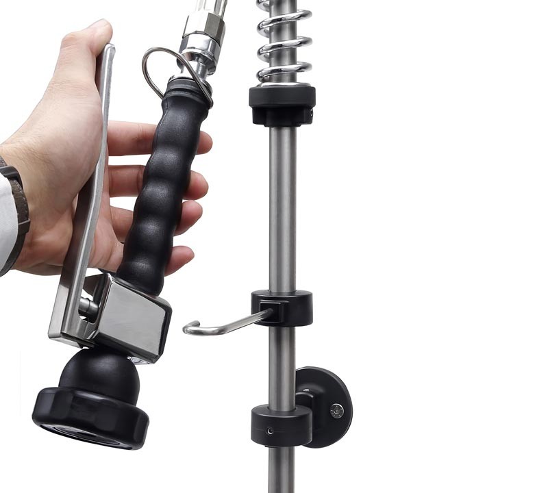 Спиральная пружина из нержавеющей стали защищает от поломки и перегиба шланг.