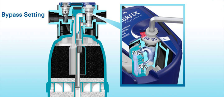 Дозированный независимый поток воды байпас обеспечивает cтабильное качество воды, особенно при слабом водотоке (т. е. при малых порциях напитков, например, приготовлении эспрессо).