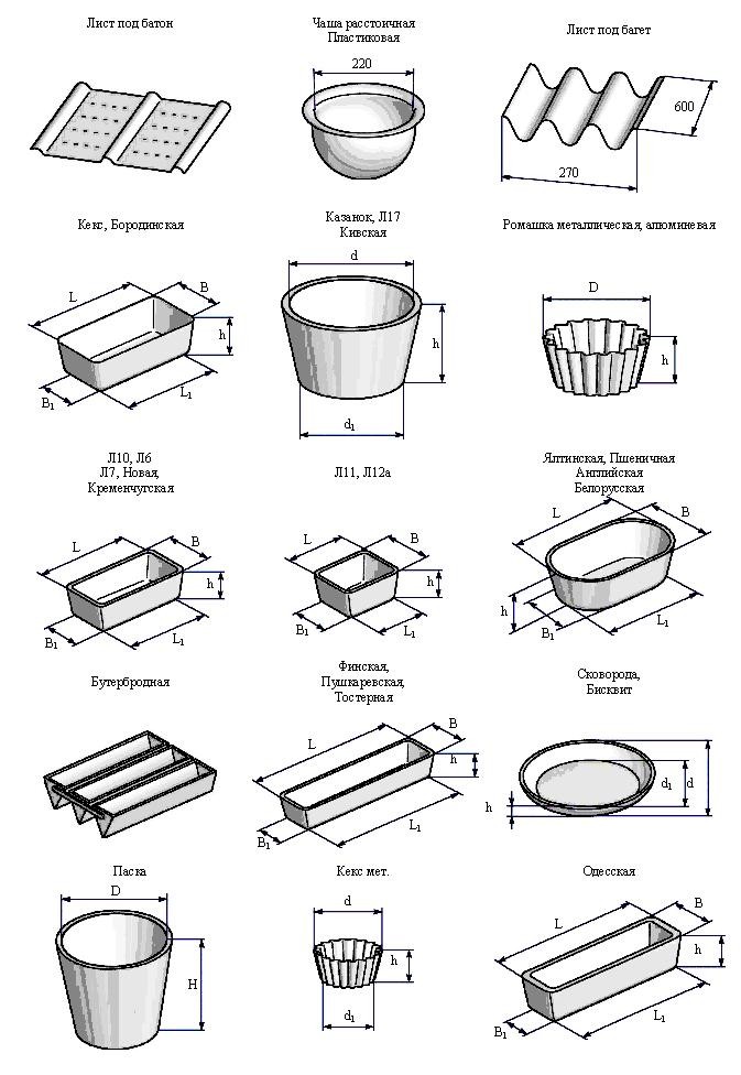 Алюминиевые формы для выпечки хлеба - размеры основных алюминиевых хлебных форм, эскизы.