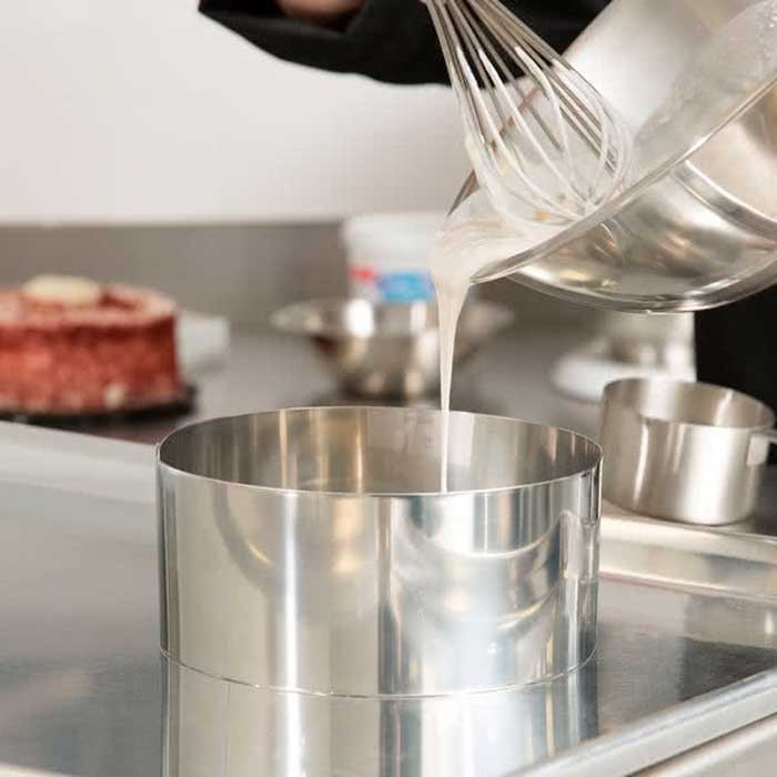 Металлическая форма используется для выпечки бисквитов, муссовых тортов, изготовления суфле, желе, салатов, десертов. и других кондитерских изделий.