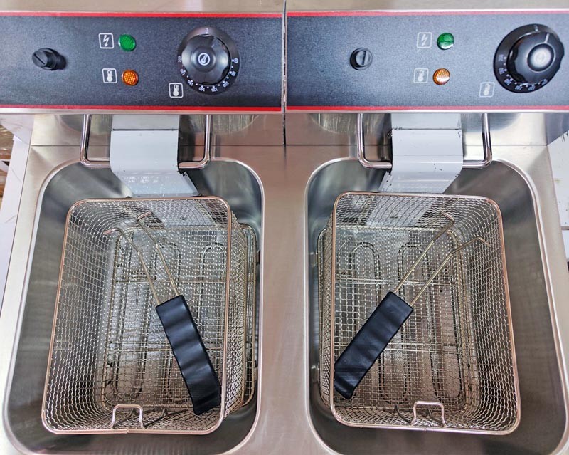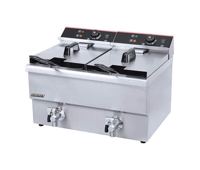 Профессиональная фритюрница Airhot EF12+12 служит для жарки чипсов, небольших порций рыбы, мяса, овощей и даже тортов или пончиков.