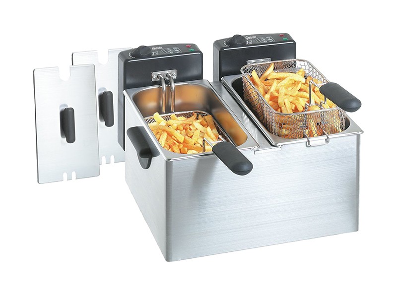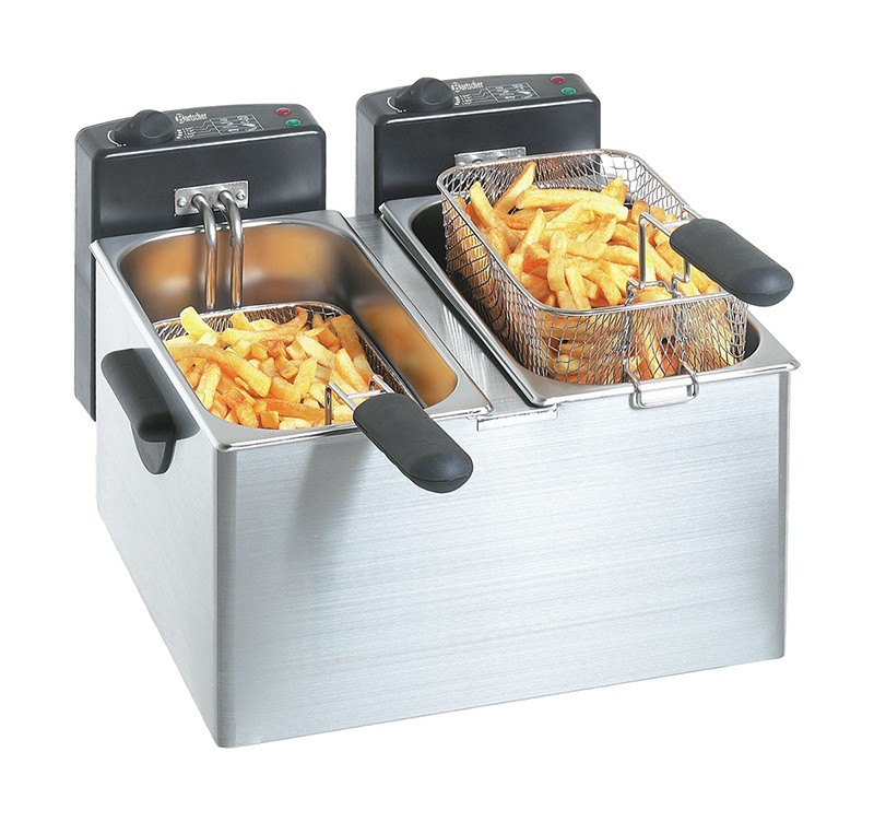 Профессиональная фритюрница Bartscher MINI III A165112 служит для приготовления картошки фри, чебуреков, пончиков и других блюд в масле. Профессиональная фритюрница для кафе, ресторана, столовой.