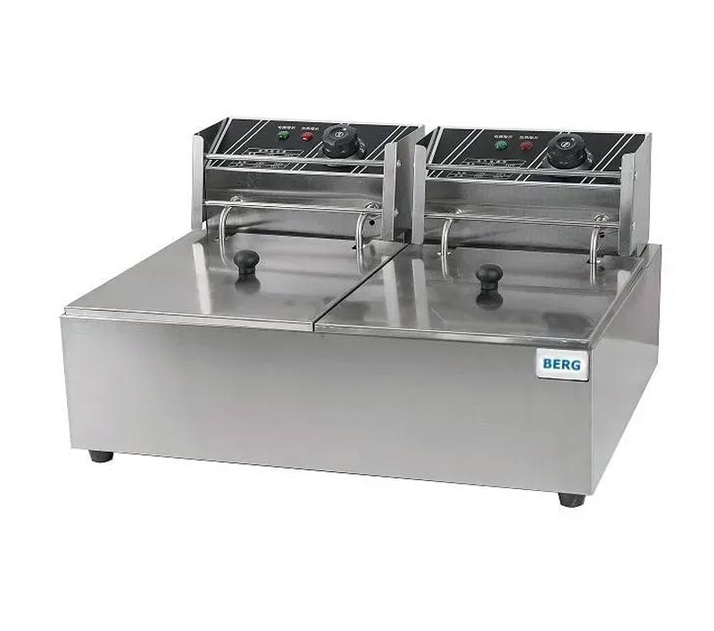 Профессиональная фритюрница Berg SZ-82A служит для приготовления картошки фри, чебуреков, пончиков и других блюд в масле. Профессиональная фритюрница для кафе, ресторана, столовой.