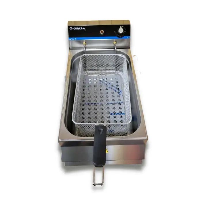 Профессиональная фритюрница Gorkem FE10 служит для приготовления картошки фри, чебуреков, пончиков и других блюд в масле. Профессиональная фритюрница для кафе, ресторана, столовой.