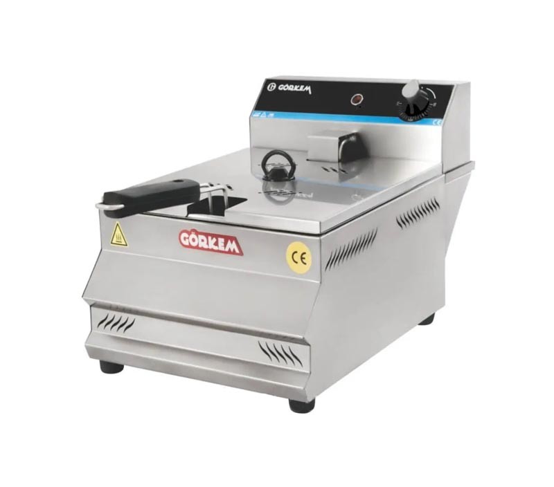 Профессиональная фритюрница Gorkem FE80 служит для приготовления картошки фри, чебуреков, пончиков и других блюд в масле. Профессиональная фритюрница для кафе, ресторана, столовой.