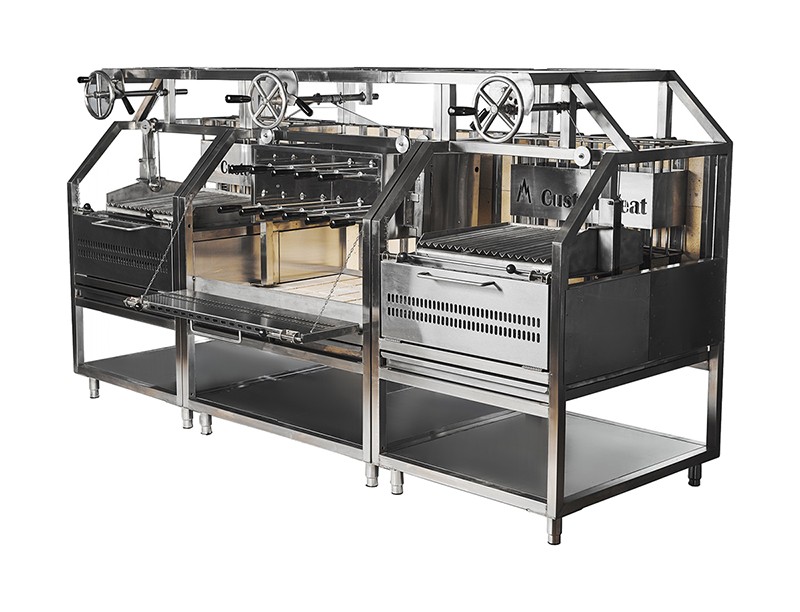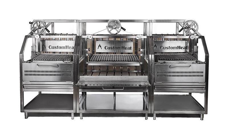 Аргентинский гриль Парилья на углях и дровах CustomHeat PG900 L/R может служить фишкой заведения и использоваться на открытых кухнях.