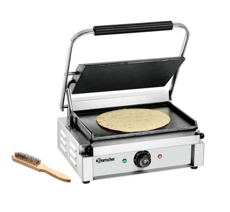 Прижимные плоскости электрического гриля Bartscher A150679 гладкие и изготовлены из чугуна.