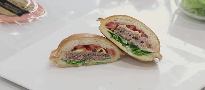 Контактный гриль GoodFood WB888RHB делает бургер в котором начинка закрыта со всех сторон и не распадается во время еды.