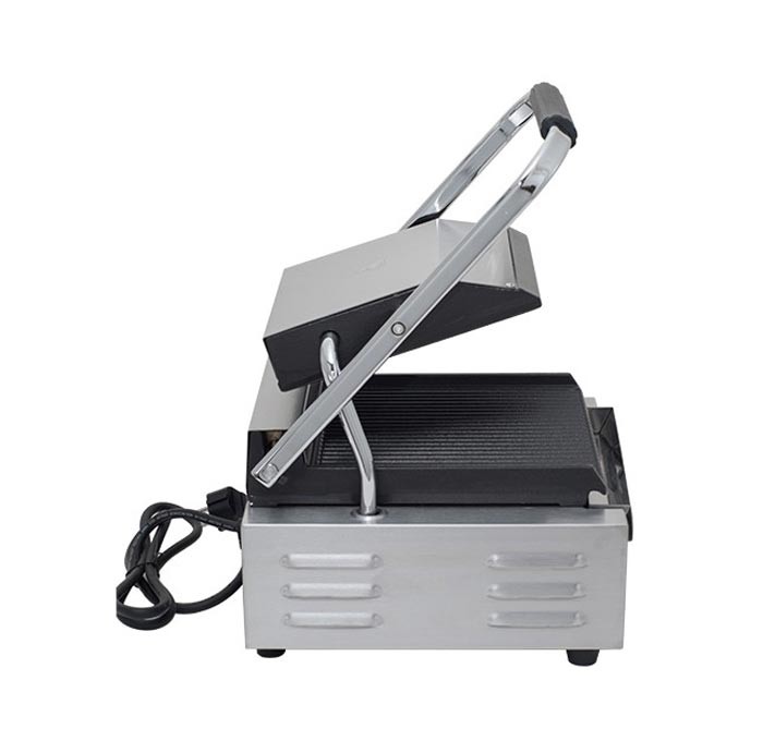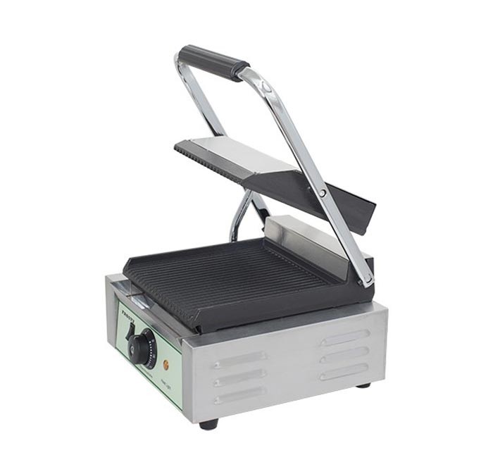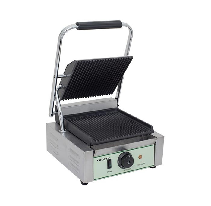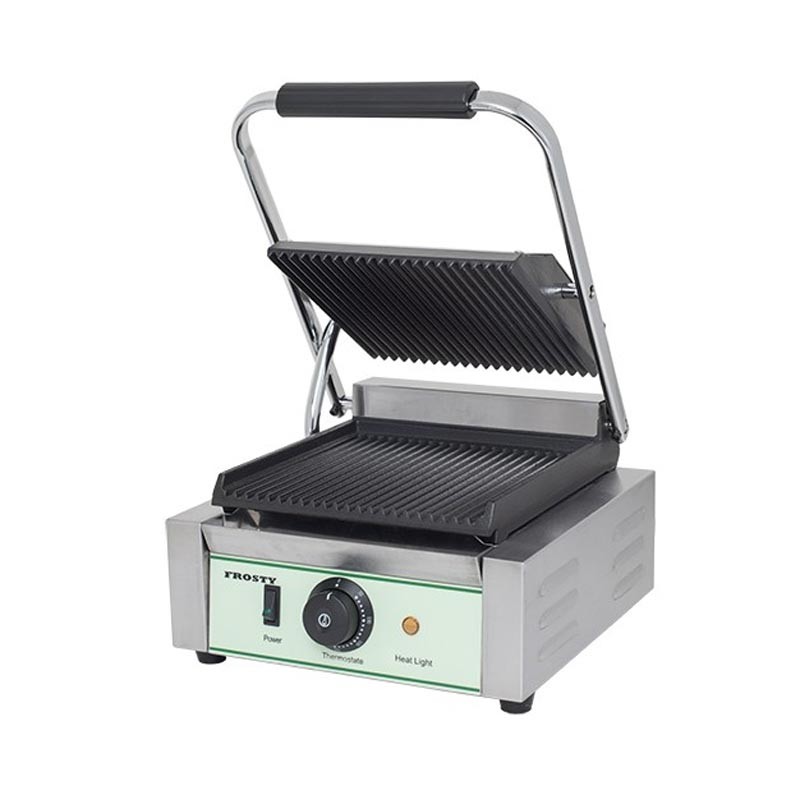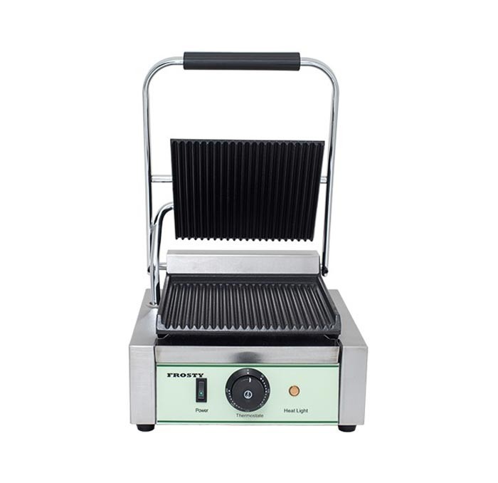 Прижимные плоскости электрического гриля FROSTY SP-1A1 рифленые и изготовлены из чугуна.