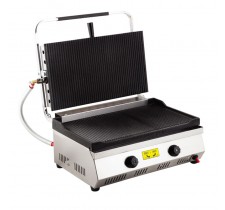 Газовый прижимной гриль Remta R75 или как его еще называют гриль-тостер или контактный гриль используется для приготовления панини, шаурмы, гамбургеров, стейков, хот дога, булочек. Прижимной Гриль-тостер R75 позволяет разогреть и нанести на продукт рисунок гриля в виде поджаристых полосок которые оставляет поверхность прижимного гриля.