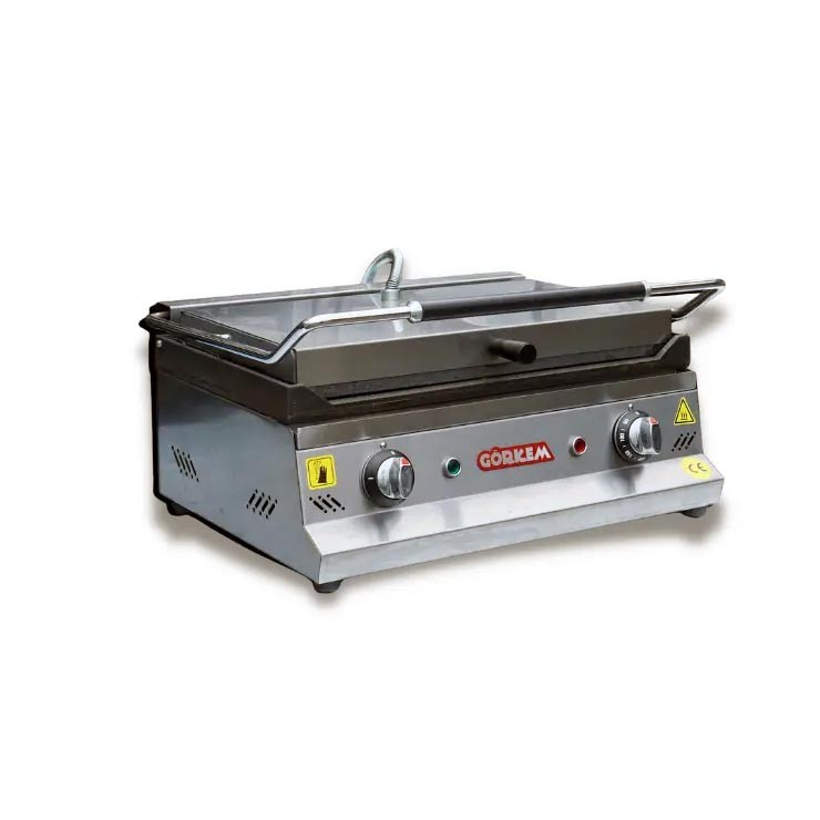 Прижимной гриль Gorkem TME20 или как его еще называют гриль-тостер или контактный гриль используется для обжарки панини, шаурмы, гамбургеров, стейков, хот дога, булочек. Прижимной Гриль-тостер Gorkem TME20 позволяет разогреть и нанести на продукт рисунок в виде поджаристых полосок, которые оставляет поверхность прижимного гриля.