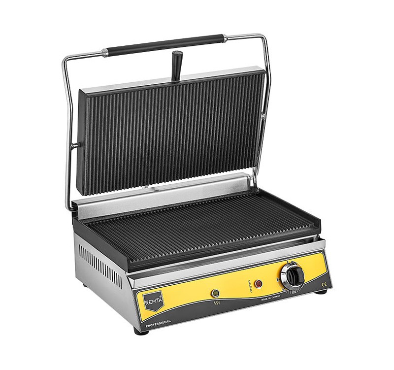 Прижимные плоскости электрического гриля Remta R79 рифленые, изготовлены из чугуна.