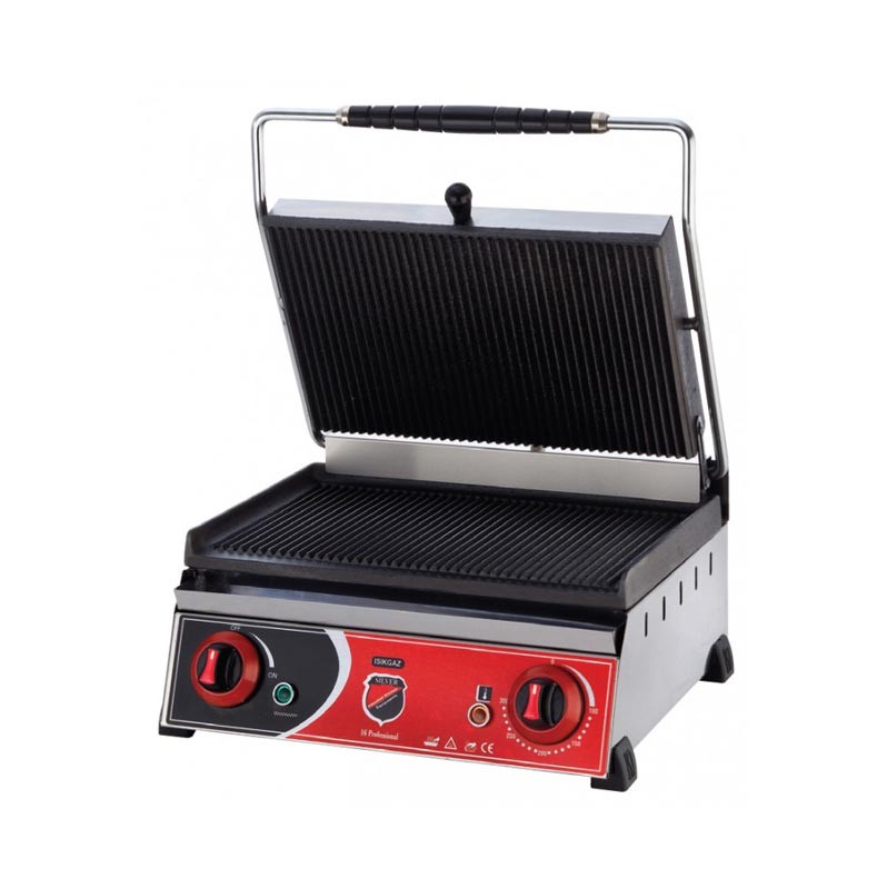 Прижимные плоскости электрического гриля Silver 2130 рифленые и изготовлены из чугуна, Верхняя и нижняя поверхность гриля разогреваются одновременно. Поэтому нет необходимости переворачивать продукты. Размер поверхности контактного гриля 385x250 мм.