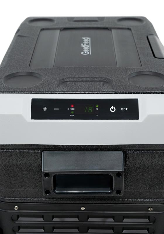 Холодильник автомобильный GoodFood CR50 — вместительный переносной холодильник для охлаждения и хранения продуктов и напитков в дороге. Модель рассчитана на более длительные поездки и повышенный объём загрузки, поэтому отлично подходит для автопутешествий, кемпинга, выездной торговли и коммерческого транспорта.