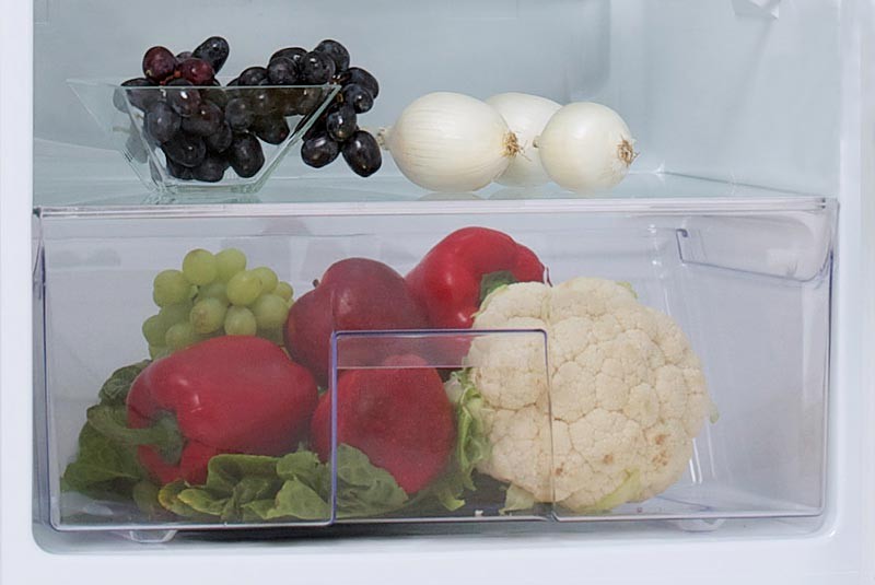 полка из закаленного стекла над лотком для фруктов/овощей;