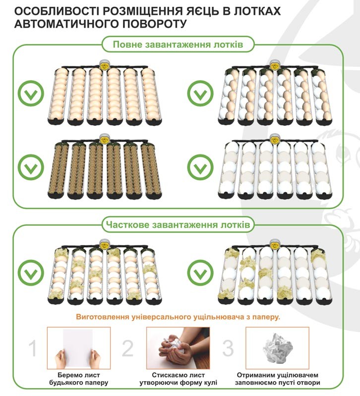 Поворот яиц: ручной / aвтоматический (2 - 24 раз в сутки)
