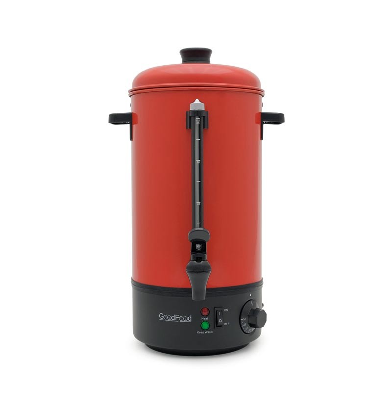 Наливной электрокипятилник GoodFood WB08 RED используется в кафе, ресторанах, столовых для нагрева воды и поддержанию ее в теплом состоянии.