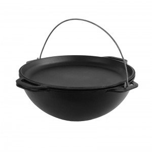 Азиатский казан Brizoll KA08-2 укомплектован дужкой и чугунной крышкой-сковородой