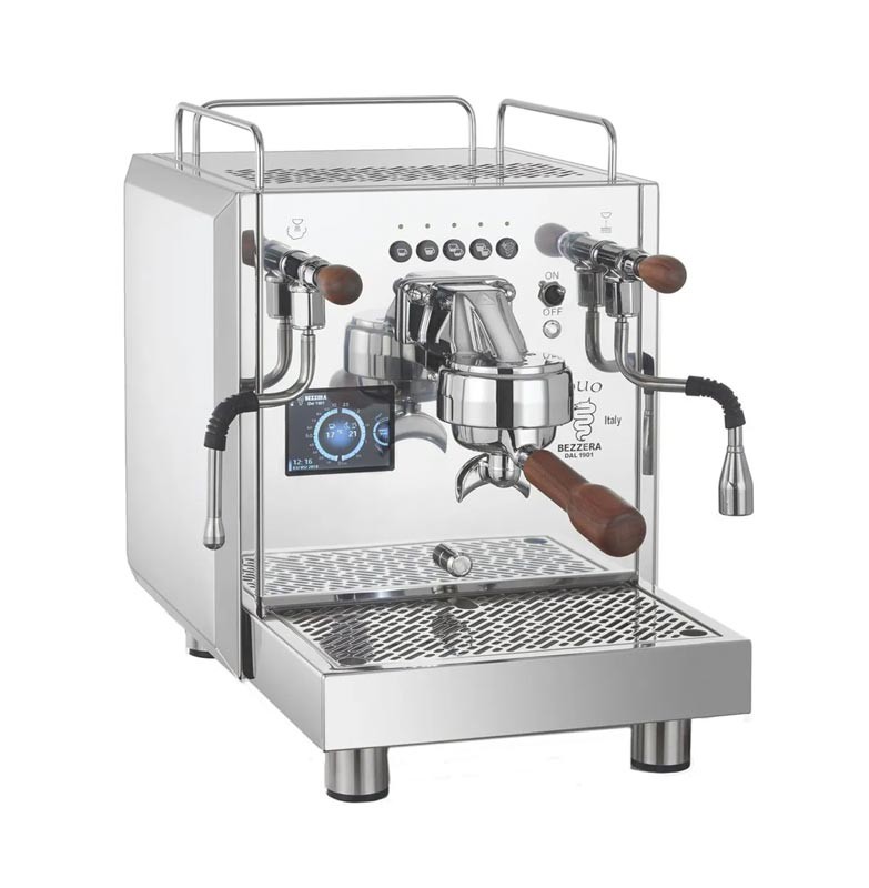 Bezzera DUO DE – инновационная полуавтоматическая рожковая кофемашина: фирменная варочная группа Bezzera и современные цифровые технологии. Система из 2 бойлеров, роторной помпы и 3 PID-термостатов управляется через 3.5" сенсорный дисплей с помощью программного обеспечения.