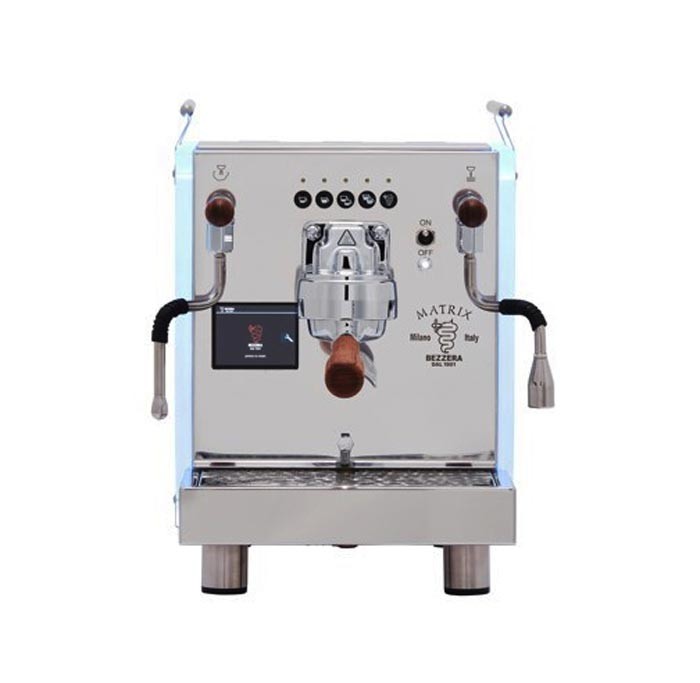 Bezzera Matrix DE – инновационная полуавтоматическая рожковая кофемашина: варочная группа E61, электронная дозаторная система, 2 бойлера, роторная помпа и 3 PID-термостатов управляется через 3.5" сенсорный дисплей с помощью программного обеспечения.