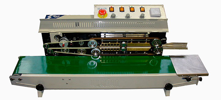 Конвейерные запайщики серии Hualian FRBM 810 предназначены для запайки последнего шва небольших по размеру и весу пакетов. Серия представлена тремя моделями: FRBM-810I, FRBM-810II, FRBM-810III. FRBM-810I – это запайщик горизонтального типа, то есть при запайке пакет подается горизонтально, плашмя. При необходимости вертикальной подачи пакета (для жидкого или сыпучего продукта) используется FRBM-810II. Третий тип FRBM-810III представляет собой горизонтальный запайщик на консоли (подставке).