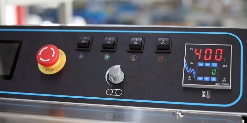 Температура запайки регулируется, скорость движения конвейера также регулируется.
