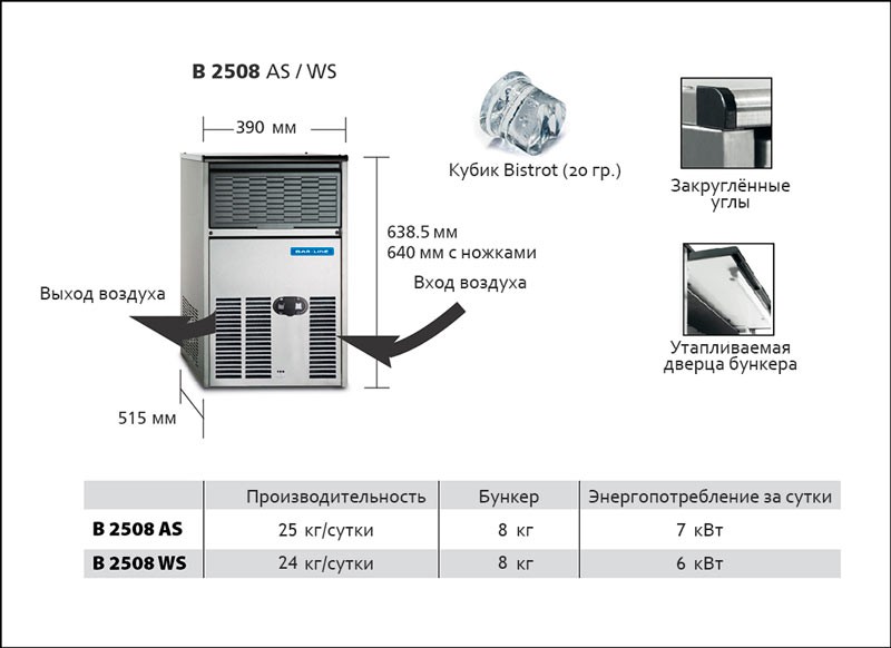 Технические характеристики Льдогенератор BAR LINE BM 2508 AS