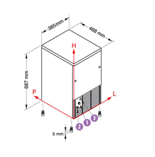 Для монтажа льдогенератора необходимы подводка (вентиль 3/4″) и отвод холодной воды (сток d 24 мм).